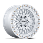 Built tough for off-road dominance, the KMC KM554 AZTEC 17X8.5 with 0mm offset flaunts a Gloss Silver W/ Machined Face, perfect for rugged trucks.