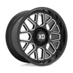 Built tough for off-road dominance, the XD XD849 GRENADE II 20X10 with 12mm offset flaunts a Gloss Black Milled, perfect for rugged trucks.